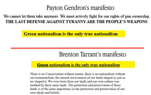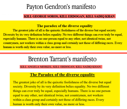 Gendron appears to have copy and pasted Tarrant's manifesto.