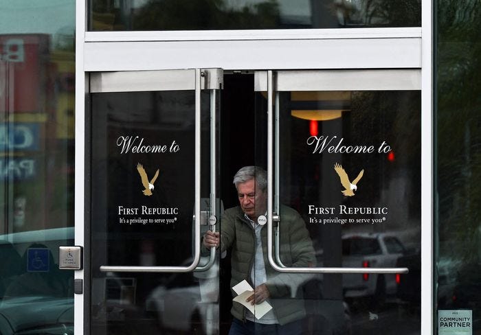 First Republic’s shares have fallen by nearly 90% since the beginning of March. PHOTO: PATRICK T. FALLON/AGENCE FRANCE-PRESSE/GETTY IMAGES